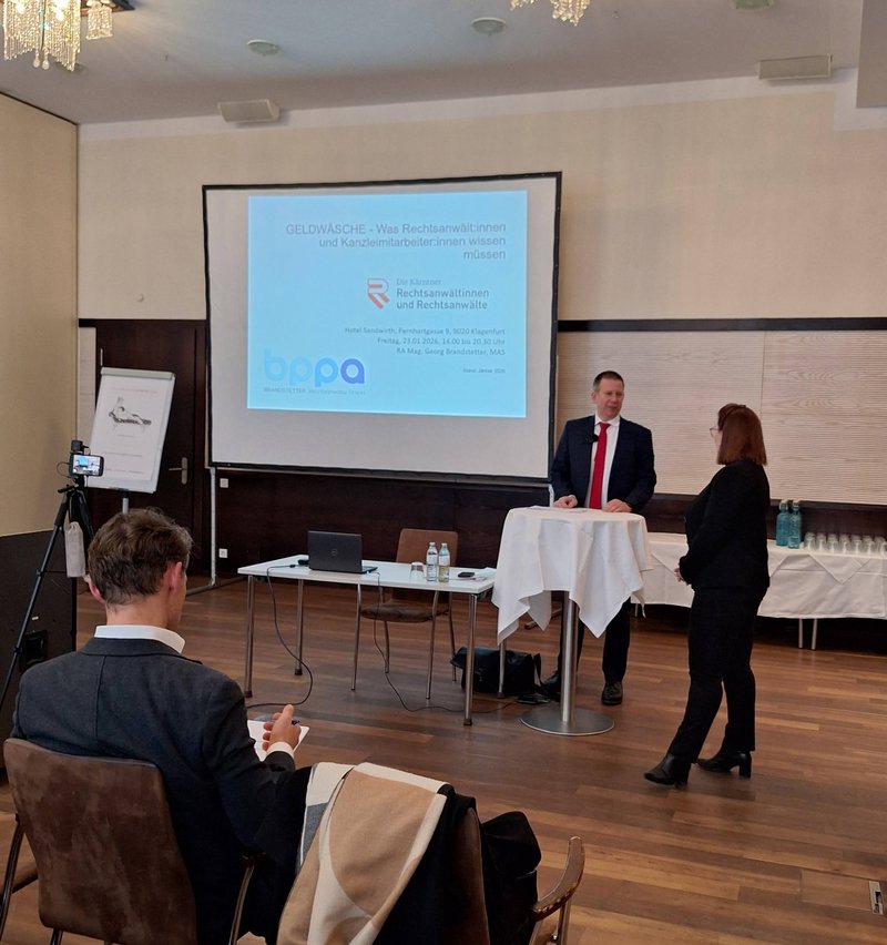 Am 23. Jänner 2026 hielt Mag. Brandstetter, Vizepräsident der Rechtsanwaltskammer Wien, in Klagenfurt ein Fachseminar zum Thema Geldwäsche ab. Die Veranstaltung mit dem Titel „Geldwäsche – was Anwält:innen und Kanzleimitarbeiter:innen wissen müssen“ wurde im Auftrag der Rechtsanwaltskammer Wien durchgeführt und richtete sich an Rechtsanwält:innen sowie Kanzleimitarbeiter:innen.